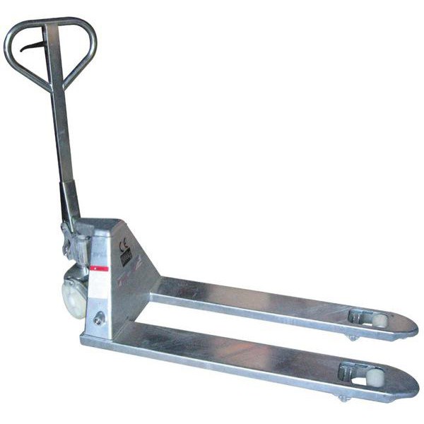 •Pallet jack with fully galvanised main frame, brackets, wheel forks, push rods and handle
