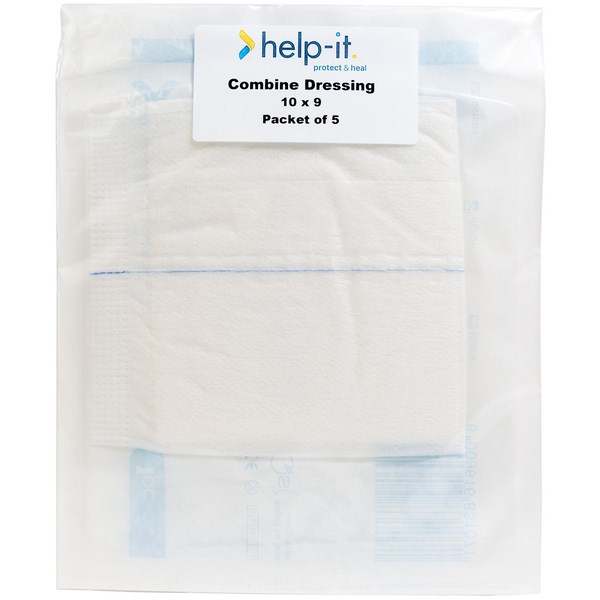 Help-It Combine Dressings are ideal for dressing wounds, cuts, grazes and as a post surgical covering. These soft combine dressing pads are highly absorbent and come in a sterile pack. They are perfect for home and office first aid kits and provide cushioning and protection for sensitive wounds and injuries.