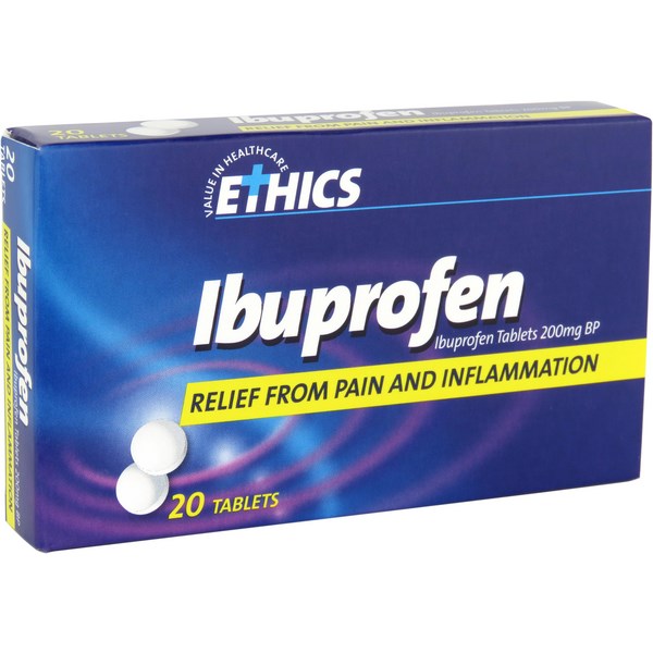 Ethics Ibuprofen tablets are ideal for relief from pain, fever and inflammation. Each tablet contains 200mg ibuprofen and provides relief for a variety of pain such as headaches, period pain, backache etc.
