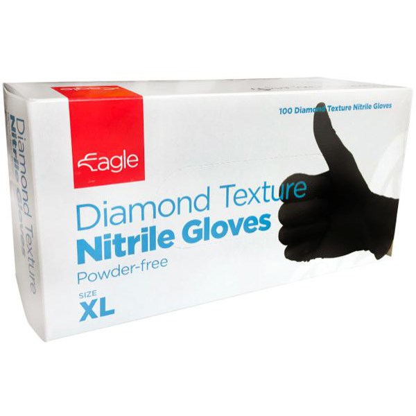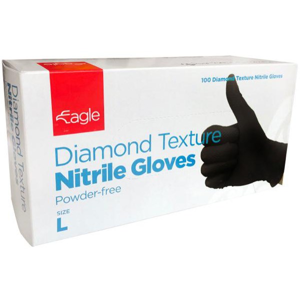 •Nitrile gloves with full diamond texture in Black