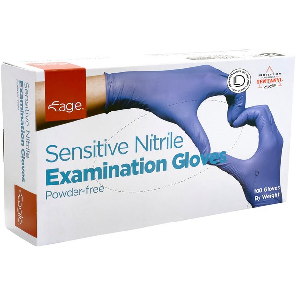These powder free, indigo coloured Eagle Sensitive Nitrile Gloves have a low dermatitis potential and are designed for those with sensitive skin in mind. These latex free gloves do not contain accelerator chemicals normally used in the manufacturing process of nitrile gloves which can cause skin irritation and feature a 240mm cuff length for added protection. They offer a high barrier protection against pathogens and viruses, and are resistant to permeation by chemotherapy drugs and viral penetration. These gloves are approved for medical use.