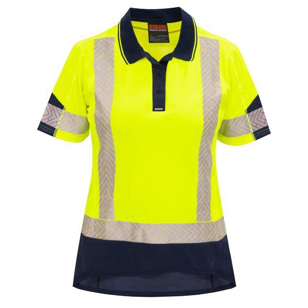 This Bison Women's Hi Vis Day Night Polo Shirt is a lightweight polo shirt with moisture wicking panels for comfort and ventilation. The high visibility polo shirt is suitable for day and night use and features a longer hem at the back to provide additional coverage when bending or crouching. Ideal for use in trades, construction, agriculture, forestry, warehousing, manufacturing and mining.