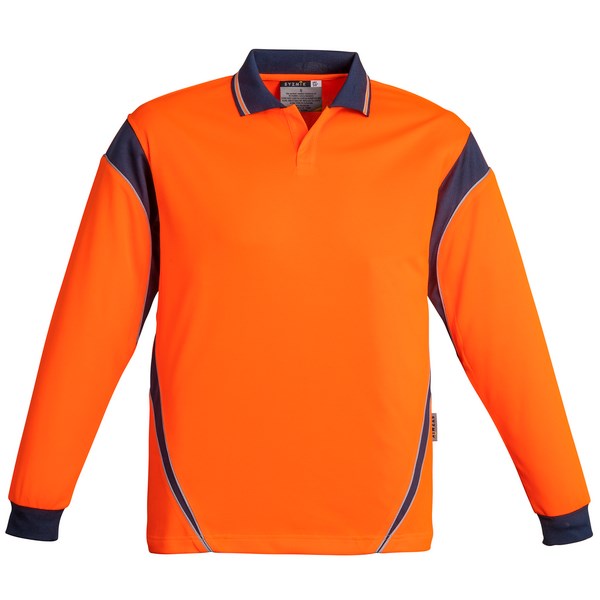 NRC Syzmik Aztec Mens Hi Vis Long Sleeve Polo Orange/Navy