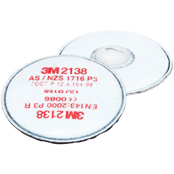 This 3M™ GP2/GP3 Respirator Mask Filter 2138 is a lightweight filter with low breathing resistance and effective filtration efficiency. The filter is designed to provide protection against P2 particulates with the 3M™ half face respirator and P2/P3 particulates with the 3M™ full face respirator. The filter also helps to protect against ozone and nuisance level acid gas and organic vapours with low vapour pressure.