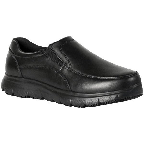 •Full grain leather slip on safety shoes in black