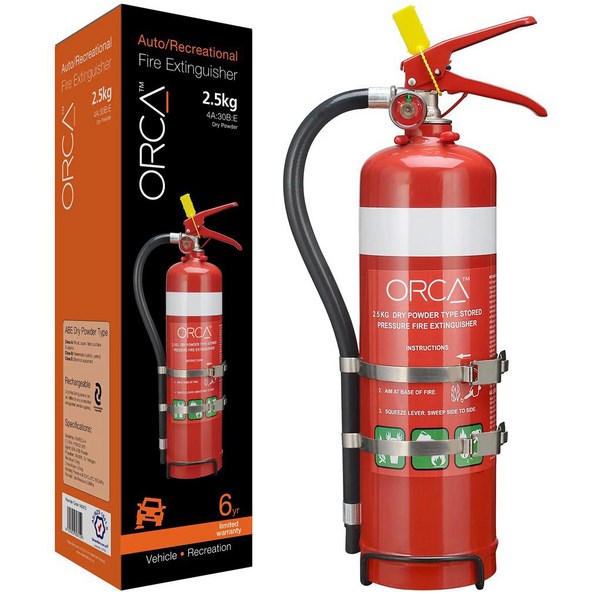 The Orca Dry Powder Fire Extinguisher is an ideal multi-purpose extinguisher for home, office and commercial use. The unit has a red powder coated steel cylinder and comes with easy to use handles, a brass chrome plated valve assembly, a stainless steel gauge and a safety pin seal.