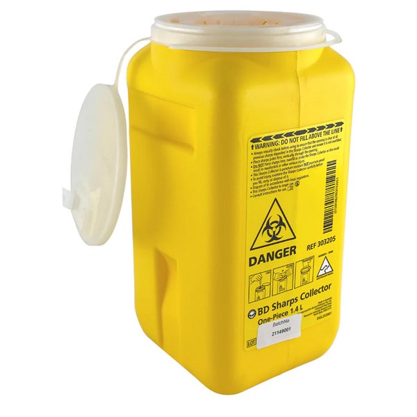• Safe disposal bin for biologically contaminated sharp objects