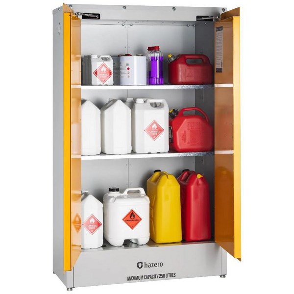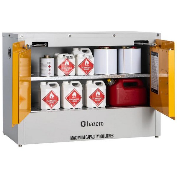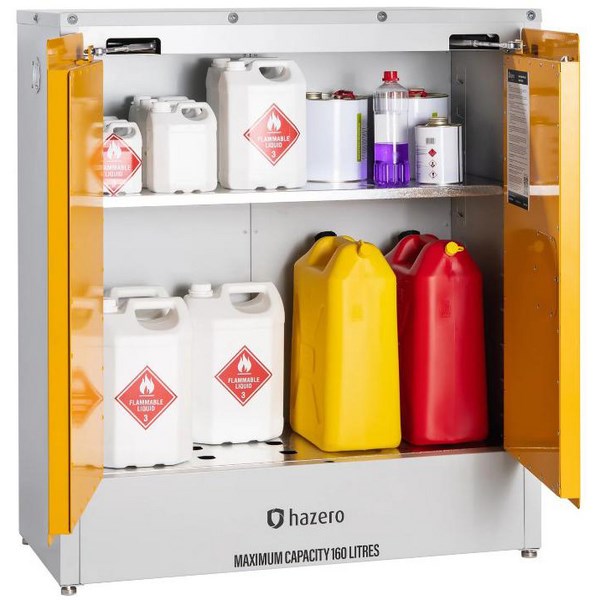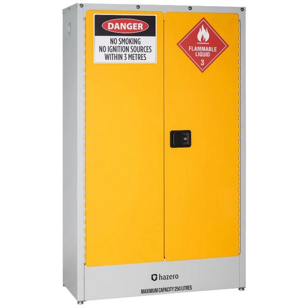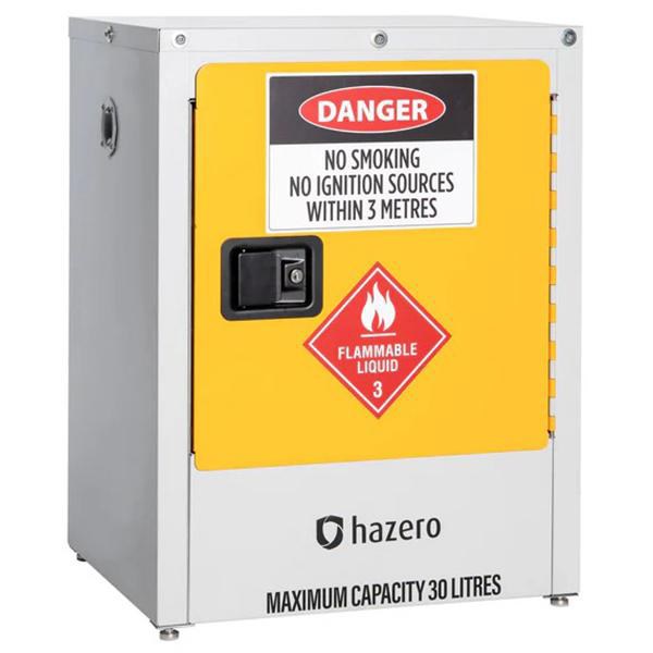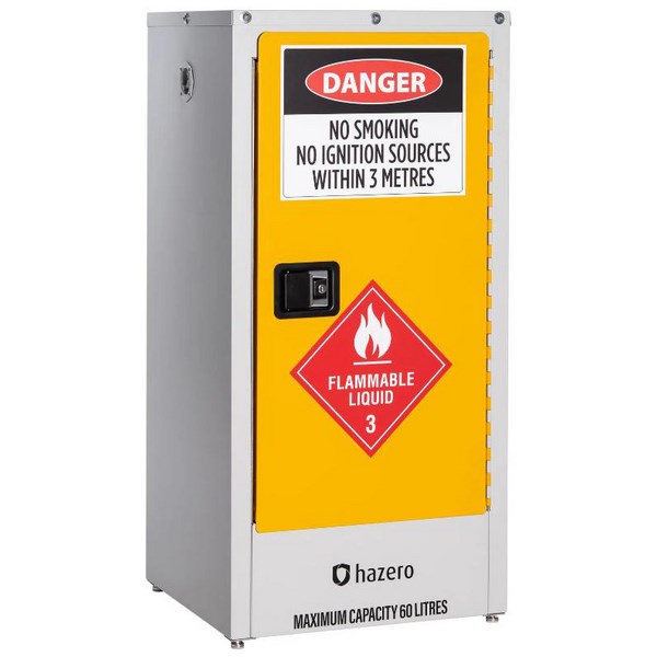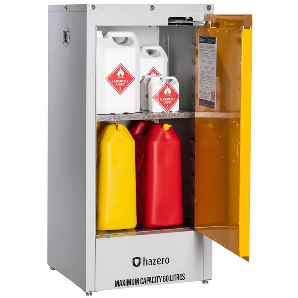 Built to meet and exceed the legislative requirement of AS1940, Hazero Flammable Liquid Cabinets are designed to be a convenient, compliant storage solution for keeping people safe and property protected when working with and storing flammable liquids. They are ideal for use in labs, schools, garages, home workshops or any other places where flammable liquids are used. Optimising space and safety, these cleverly designed, double skinned, Class 3 flammable liquid cabinets are ideal for keeping thinners, alcohols, acetones, and other flammables, well out of harm’s way. All Hazero flammable liquid cabinets feature a recessed handle which gives them an even smaller profile and means the handles will not catch on clothing or get knocked accidentally.