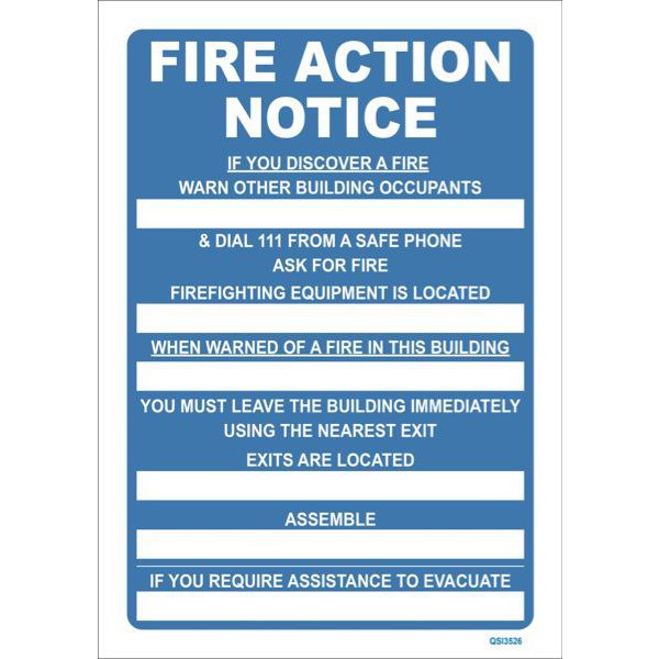 The Fire Action Notice Safety Sign is a must-have health and safety sign for workplaces and public areas. It is made from UV treated high-quality plastic to ensure a longer life. The ink is UV resistant making it suitable for use outdoors.