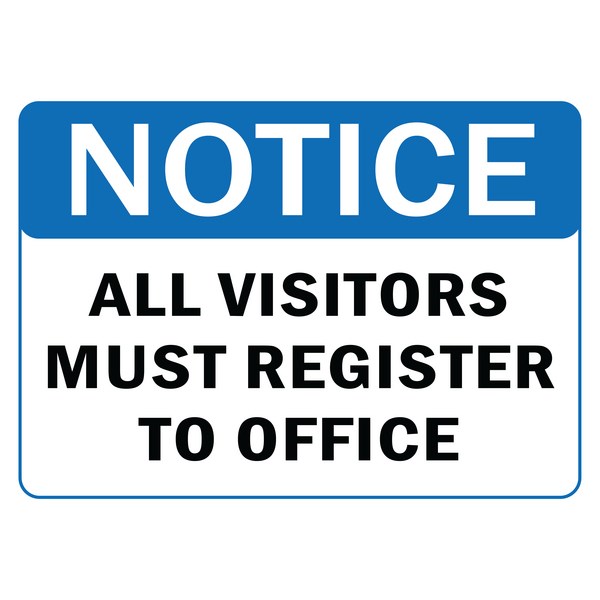 •Notice All Visitors Must Register At Office Safety Sign to keep visitors to your workplace safe