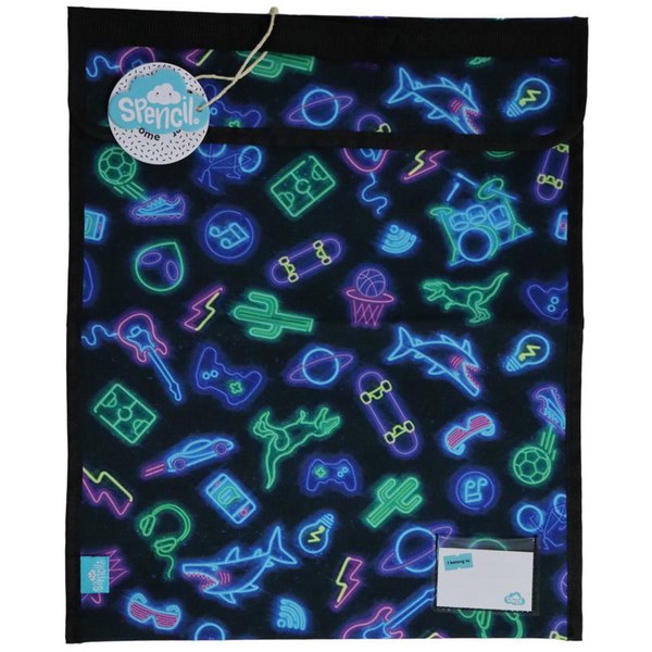 This beautiful Spencil Neon Life Homework Bag has room for all essential books and its eye-catching Neon Life design is sure to wow any young kid. Featuring a PVC coating, nylon inner, and a hook and loop fastening, this bag also has a name pocket and handle. It easily holds school books or libraby books and can be used for art classes, music lessons and more, whilst keeping books or homework safe and protected.