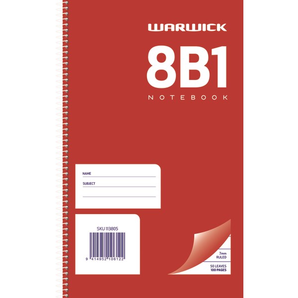 This Warwick 8B1 Spiral Notebook is a convenient notebook for recording notes, ideas, lists, thoughts and more. The spiral bound note book features 50 leaves with 7mm ruled lines. Excellent for use in the office, at school, for study, and for keeping on hand in your briefcase, satchel or handbag.