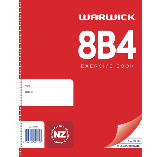This Warwick 8B4 Spiral Exercise Book is a convenient book for recording notes, homework, exercises, drafts, thoughts and ideas. The soft covered, spiral bound exercise book features 50 leaves with 7mm ruled lines. Great for school, study, for use in the office and at home.
