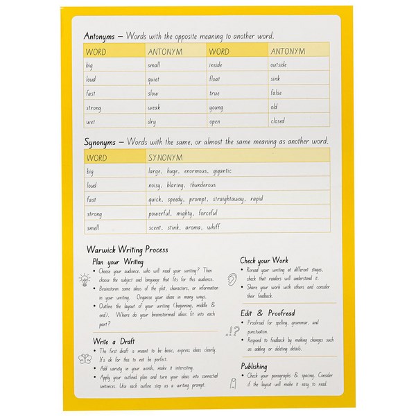 • Includes Word cards, My Own Word list, Antonyms, Synonyms, Warwick writing process, NZ Sign Language for the Classroom, figures of speech, illustrated digraph chart and types of words