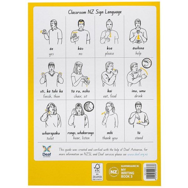 This Warwick My Writing Book 3 Taku Pukapuka Tuhituhi Exercise Book is perfect for use at school. The book is ruled with 9mm lines and has 64 pages (32 leaf) of 80gsm paper with reinforced four staple binding and has a laminated cover that helps to protect against wear and tear. It includes plenty of reference materials to assist with student learning.