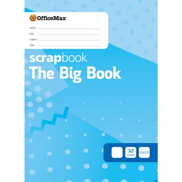 The Big Book Scrapbook Unruled from OfficeMax has three staples to reinforce the spine. It has 32 leaves (64 pages) for note-taking, drawing or scrapbooking.
