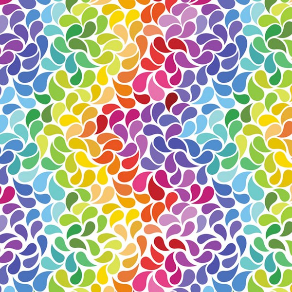 • Swirls design featuring rainbow-coloured tear drops swirl over a white background