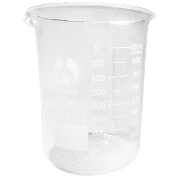 The Low Form Glass Beaker has a capacity of 1000ml and is ideal for science lab experiments and chemistry. Made from borosilicate glass, this beaker is extremely resistant to thermal shock. It features a spout for easy pouring and is graduated in 200ml increments.