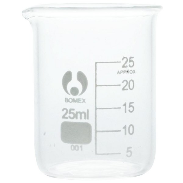 The Low Form Glass Beaker has a capacity of 25ml and is ideal for science lab experiments and chemistry. Made from borosilicate glass, this beaker is extremely resistant to thermal shock. It features a spout for easy pouring and is graduated in 5ml increments.