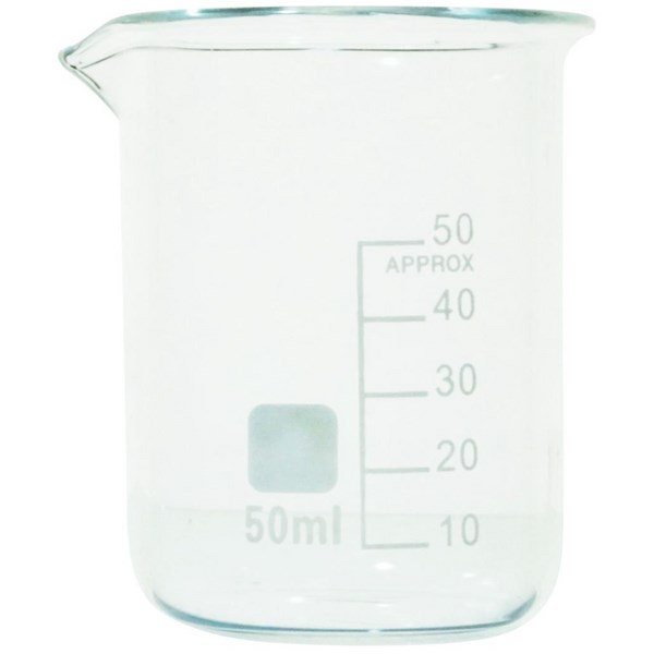 •Low form glass beaker with 50ml capacity