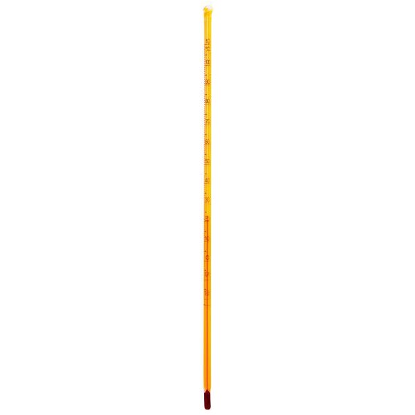 This Immersion Thermometer is a mercury-free, red spirit thermometer that is ideal for reading liquid temperatures in experiments. It features a white back, which makes it easier to read and measures temperatures between -10 and 110 degrees Celsius. This thermometer is marked in increments of 1C and measures 300mm.