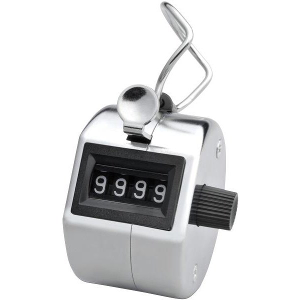 This Acme Hand Tally Counter 4-Digit is a 4 digit counter ideal for use when working with a maximum capacity limit or needing to track numbers. A comfortable fit with chrome-plated with a metal shell and finger ring.