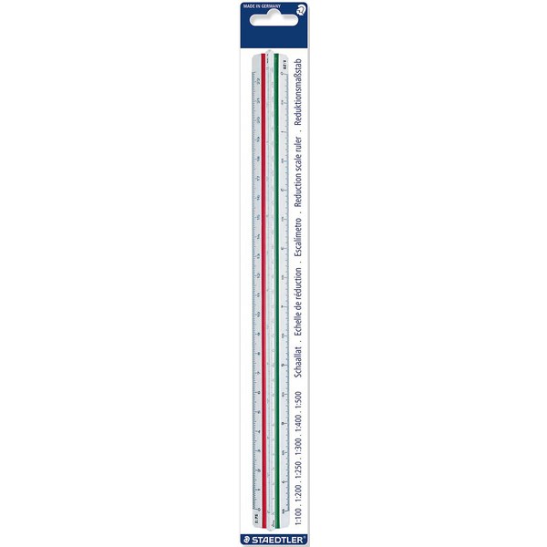 The Staedtler Mars Triangular Reduction Scale Ruler 561 98 4 is ideal for use by architects. It is made from a solid white plastic material with two coloured flutings and colour-coded grooves for easy identification of scales. The precision divisions are numerated both ways with dimension markings in cm and m for easier working. The triangular design of the scale ruler gives a perfect grip that is vital for accuracy when working on technical drawings.