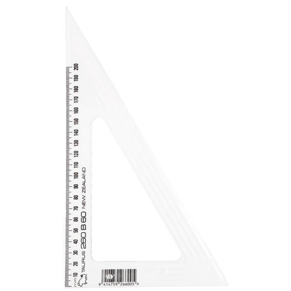 Ensure complete accuracy in your technical drawings with this Taurus Square Set, which is a great tool for drawing parallel and perpendicular lines. It has a clear plastic construction and measures 26cm / 60 degrees on the longest side with a bevelled edge.
