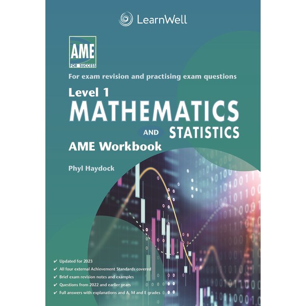 The AME Mathematics & Statistics Workbook NCEA Level 1 covers four external Mathematics and Statistics Achievement Standards: