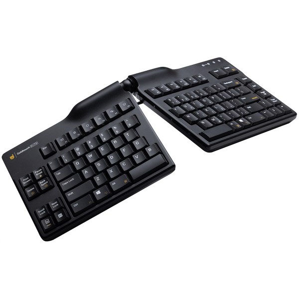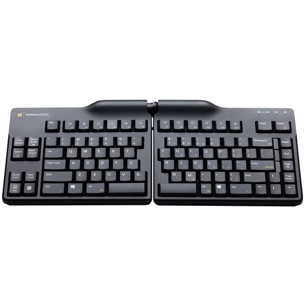 This Elite Wired A Shape Goldtouch Keyboard can help support your posture and the angle of your wrists, hands, and forearms when typing, reducing the risk of repetitive strain Injury. It’s the most versatile ergonomic keyboard yet, allowing adjustment horizontally from 0-30 degrees and vertically from 0-60 degrees. It has a thinner, sleeker profile and improved handle to adjust the keyboard’s angle. Together with the split design and half-height keys, the keyboard offers a more sophisticated look with a less bulky appearance.