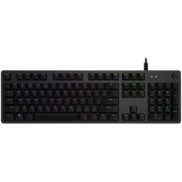 The Logitech G512 Carbon is a high performance, wired gaming keyboard with advanced gaming technology and full function keys. Featuring LightSync technology, its lights are driven by games, audio or your screen, delivering the most immersive RGB experience. Made from aluminium alloy, it has a blade-like chassis with a beautiful brushed metal finish. USB Passthrough puts convenience and speed directly within reach and with its GX Blue mechanical switches, it offers an audible, tactile feedback just like traditional gaming.