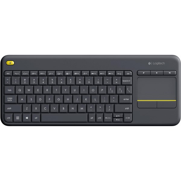 With a wireless range of up to 10m, Logitech's Wireless Touch K400 Plus keyboard provides lean-back wireless control of your laptop, even when it’s connected to the TV. Control your laptop without getting up from the couch. The large 3.5 inch, built-in multi-touch touchpad also makes it easy to navigate content online and on your computer. The ultrathin, compact design of the K400 Plus saves space but still provides comfortable typing, thanks to the sleek, low-profile keys that feel good and barely make a sound. The keyboard also stands vertically for easy storage when room space is limited.