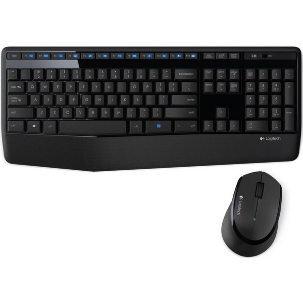 The Logitech MK345 desktop set is a handy wireless keyboard and mouse combo that connects to your computer via a plug-and-forget Nano-receiver. The generous palm rest, the contoured right-handed mouse and the adjustable keyboard height give you more comfort. The keyboard features a full-size layout with 12 enhanced F-keys for media control and a spill-resistant design so you don't have to worry about accidental spills. Automatic sleep mode when not in use, helps prolong battery life. The mouse features a battery life indicator and storage space for the Nano-receiver.