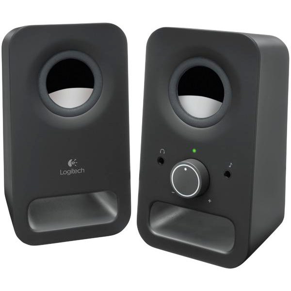 This pair of Logitech Z150 Portable Speakers has 6 watts of peak power allowing a crisp stereo sound you'll be able to hear loud and clear. The right speaker has a headphone jack allowing for private listening sessions, and the compact design ensures they are a great fit for small places around the office or at home all controlled from your fingertips.