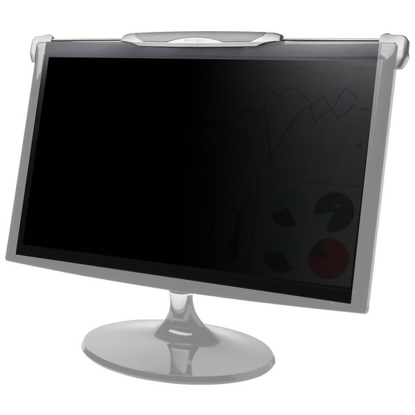 Choose this Kensington Privacy Screen Filter for 22-24 inch widescreen monitors to protect the confidentiality of data on your screen. Limits the field of vision to +/- 30 degrees, meaning that a person viewing from the side will see only a dark screen. The privacy filter features a simple spring loaded mount to secure the screen to your monitor bezel, conveniently allowing you to take the screen off and on as needed. The filter is designed to help reduce harmful blue light, and has a textured surface with a light tint to help improve contrast and minimise glare.