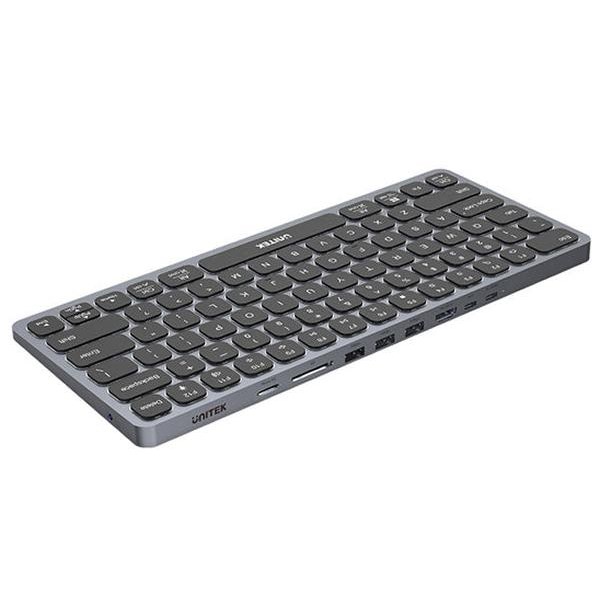 This Unitek 9 In 1 Keyboard Hub is a great solution for those who need a compact IT setup with plenty of ports. This keyboard hub combines the functionality and flexibility of a keyboard and a multi-port hub to provide a great all in one device. The keyboard is backlit for easier typing and has ergonomic foot pads so that the height of the keyboard can be adjusted for comfort. It features plenty of ports, has ultra fast data transfer and supports HDMI outputs and video resolutions up to 4K@60Hz.