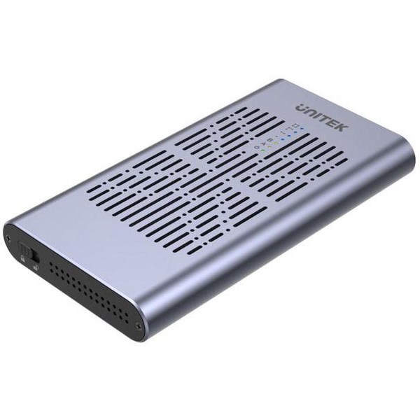 This Unitek USB-C to PCIe/NVMe M.2 SSD 10Gbps Dual Bay Enclosure not only lets you read two M.2 SSD simultaneously but also comes with an offline clone function too. With its USB3.2 Gen2 10Gbps SuperSpeed, it ensures super fast data transfer rates, allowing you to transfer large files in seconds. This enclosure features a built-in slim fan and high thermal-conductivity aluminium housing for heat dissipation and long-lasting usage. It also supports UASP & TRIM.