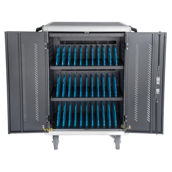 The Digitus USB-C 30 Bay Charging Trolley is an excellent solution for transporting and charging up to 30 tablets or Chromebooks. It securely holds devices with dimensions up to 320x205x32mm per bay and offers both AC and USB Charging options, featuring 30 USB-C ports for convenient power delivery.