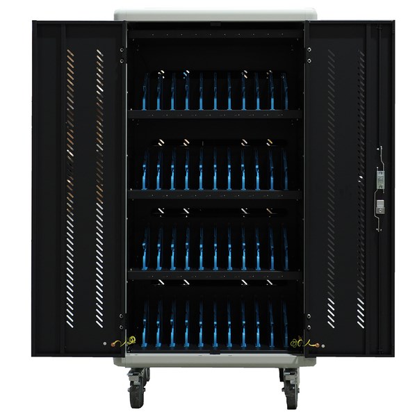 This Digitus 40 Bay Chromebook Charging Trolley is the perfect solution for those who need to securely store, transport and charge portable electronic devices such as tablets and Chromebooks. The trolley can hold and charge 40 devices and each bay has its own USB charging port and AC power socket. Equipped with a built-in power supply for constant voltage and current, as well as leakage and overload protection, this trolley will meet all your storage and charging needs.