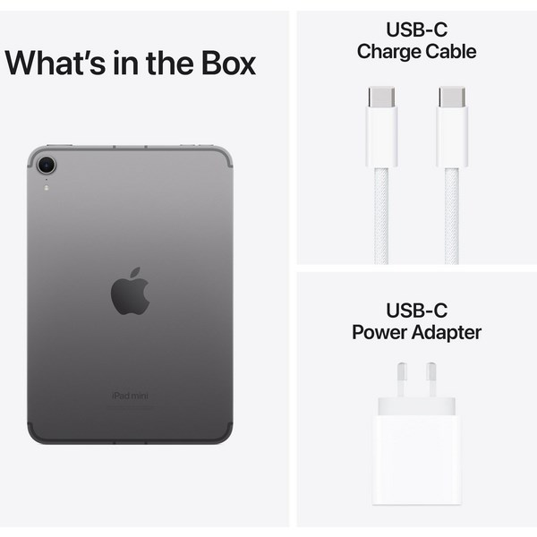 The Apple iPad Mini has been designed for multi-tasking, so you can study, work, play and create from anywhere. It features the ultrafast A17 Pro chip, an 8.3-inch Liquid Retina display plus superfast Wi-Fi 6E. It has all day battery life and is compatible with Apple Pencil Pro (not included), meaning it is always ready for any task or project.