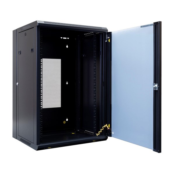 This Dynamix Lite 18RU Swing Wall Mount Cabinet is designed to hold network equipment on a wall at height. It has a unique drop in fan tray to make future servicing a breeze and bonding earth wire for front door and back mount. For ease of access there is a reversible safety glass front door and removable side panels, all lockable with a universal key. The cabinet conveniently comes with a 6 way PDU and cage nuts for installation.