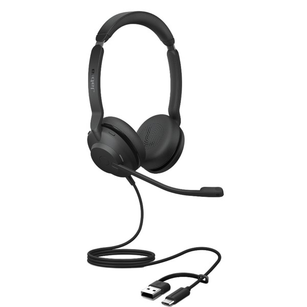 Stay focused and connected using this Jabra Evolve2 30 SE UC Stereo USB-C & A Wired Headset. Designed for comfort, this headset features a lightweight build reinforced with a steel headband and slider, along with dual microphones and 28mm speakers to reduce background noise and deliver clear sound. With USB-A and USB-C wired connectivity and UC certification, this headset is perfect for both home and office use.