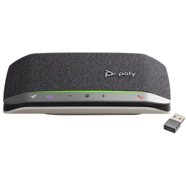 The Poly Sync 20+ CL5400 USB-A Smart Speakerphone is slim and portable, ideal for listening to music and for meetings on the go. For use with PC or smartphone, it features a Microsoft Teams button and comes with a BT600 Bluetooth adapter. It reduces echo and background noise so you can enjoy remarkable sound and professional audio even in busy environments. With up to 20 hours of talk time, this speakerphone lasts all day and includes a USB-A port for smartphone charging so you can stay connected.