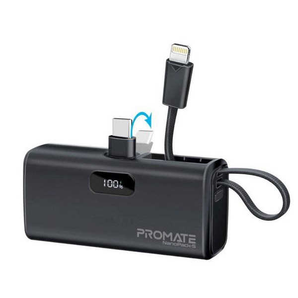 Keep your electronic devices going with this Promate 5000mAh Pocket-Sized Fast Charging Powerbank. It is made up of a 20W Power Delivery port and an 18W Power Delivery Lightning cable for super fast charging. There is a handy LED screen on the side that displays progress. With a lightweight design and built in components, the powerbank saves you from having to carry your wires around and is easy to carry around on the go.
