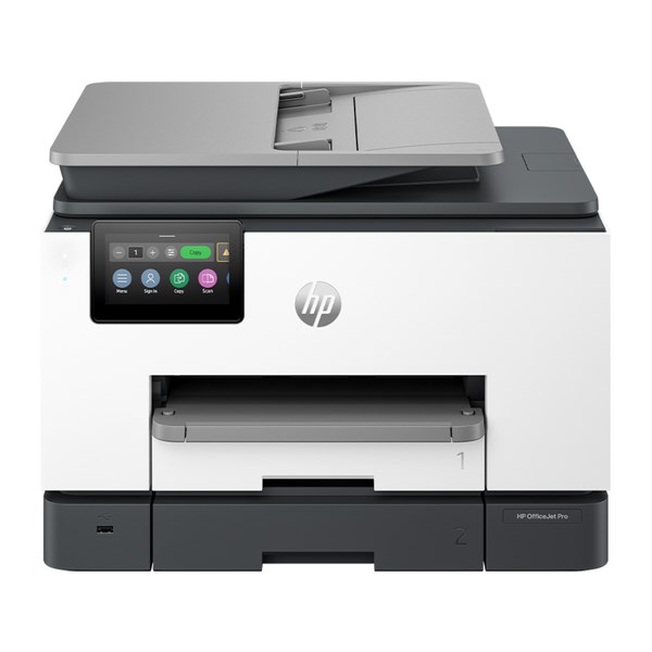 The HP OfficeJet Pro 9130E is an all-in-one printer that will allow you to print, scan and fax with ease. It offers borderless printing on photo paper, automatic duplexing on standard papers and the ability to scan to email or to a thumb drive.