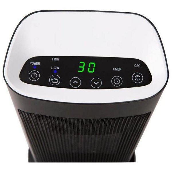 Get nice and toasty and enjoy instant heat and more control over the direction of warm airflow with this Goldair GCT335 Ceramic Tower Heater. With two heat settings, an adjustable thermostat, a 12-hour timer, an oscillation function, a remote control and an easy to use digital interface, this convenient heater has it all and you will have any medium room at your desired temperature in no time. It also features an in-built overheat protection and a safety tilt switch for maximum safety. The ceramic element in this heater is both safer and more efficient than other types of heating elements, making this a great choice for a healthy home.