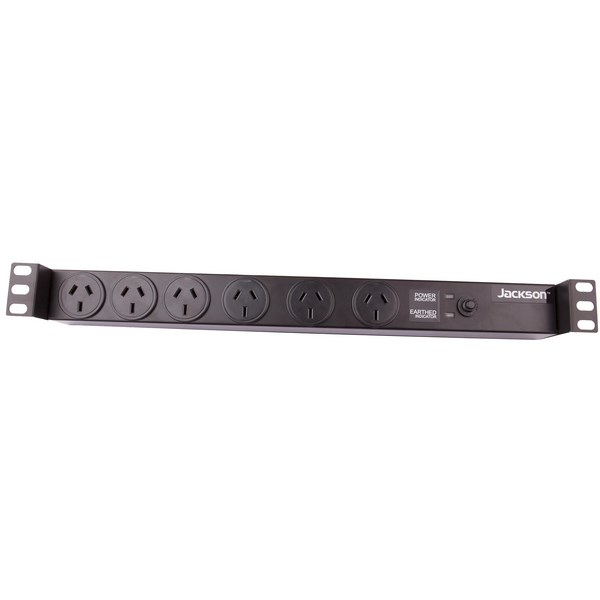 The Jackson 1RU Horizontal Power Rail provides 6 surge protected power outlets and fits a standard 19-inch rack. The unit is recessed into the cabinet and the sockets are spaced to allow for bulky plug packs. This high-quality rack mounted powerboard is ideal for server rooms and audio installations.