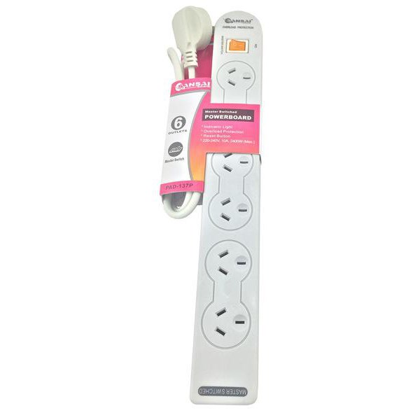 The Sansai 6-Way Powerboard features 6 outlets with a high quality master switch and space saving plug. The powerboard provides overload protection and comes with a 1 metre cable.