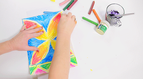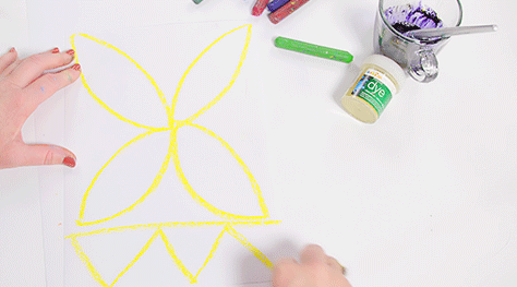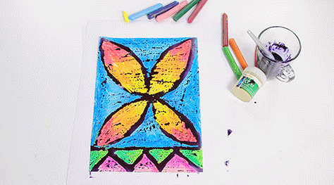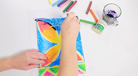 Mix the powder dye, adding more powder than you normally use to ensure it is a very dark black. Use a soft brush or sponge to wash over your picture with the dye. The chalk lines will absorb the dye, creating an outline for the areas of crayon. A certain amount of dye will remain on the crayon adding character to the picture, If too much dye is on your crayon gently dab it away with a paper towel.