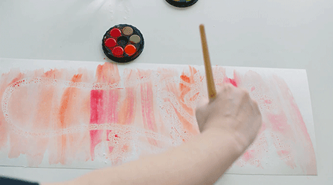 Paint until no white is showing. Use colours to create contrast and interesting colour mixing.